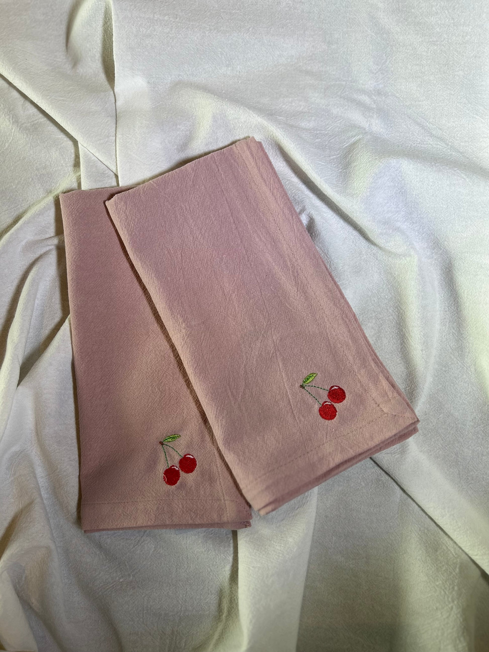We can't resist the cuteness of this embroidered cherry onto our Rosé napkin. Add a little bit of fun and a pop of colour to your table.