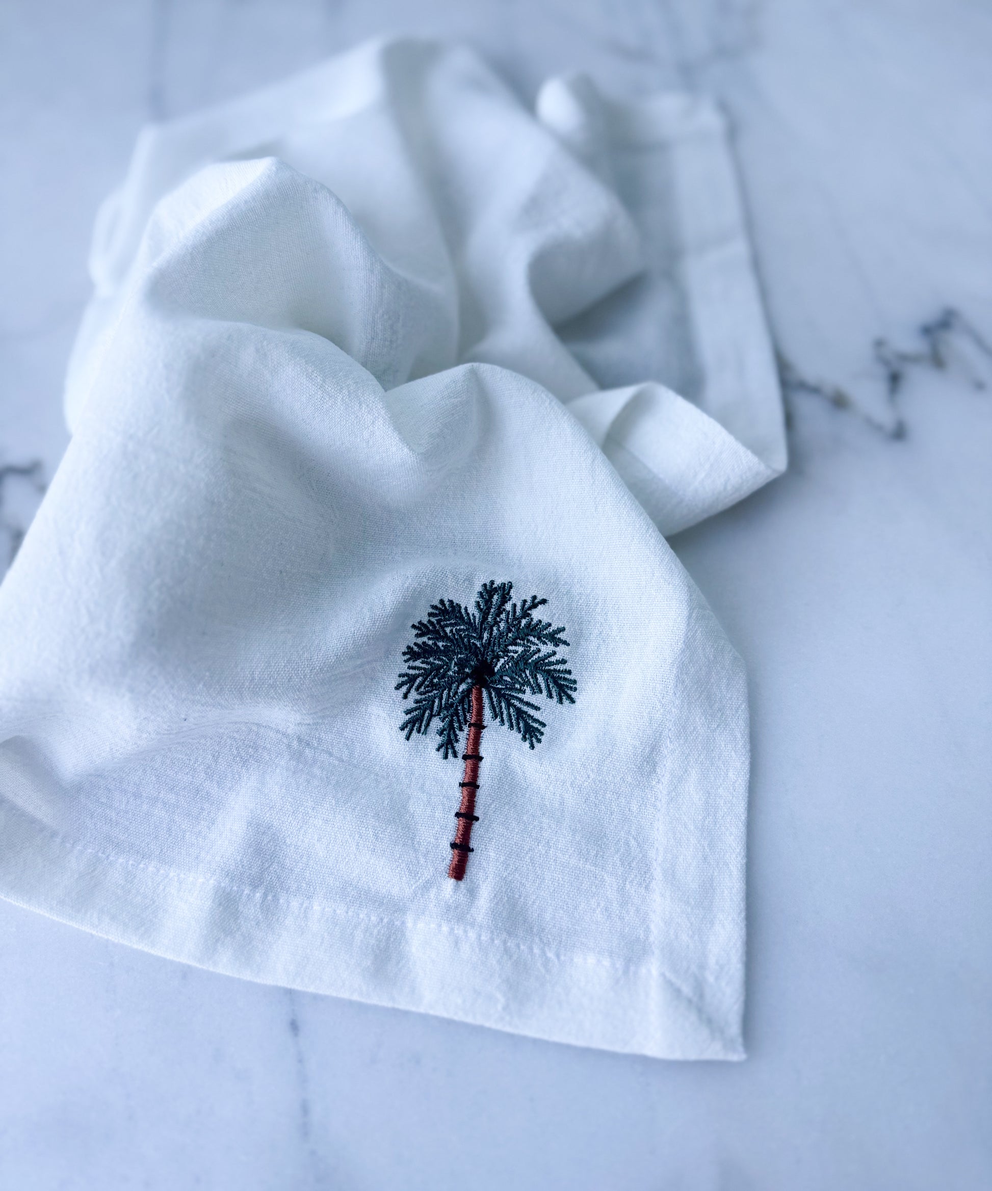 Think Piña Coladas and sandy toes. These embroidered palm tree napkins will make any table setting stand out.