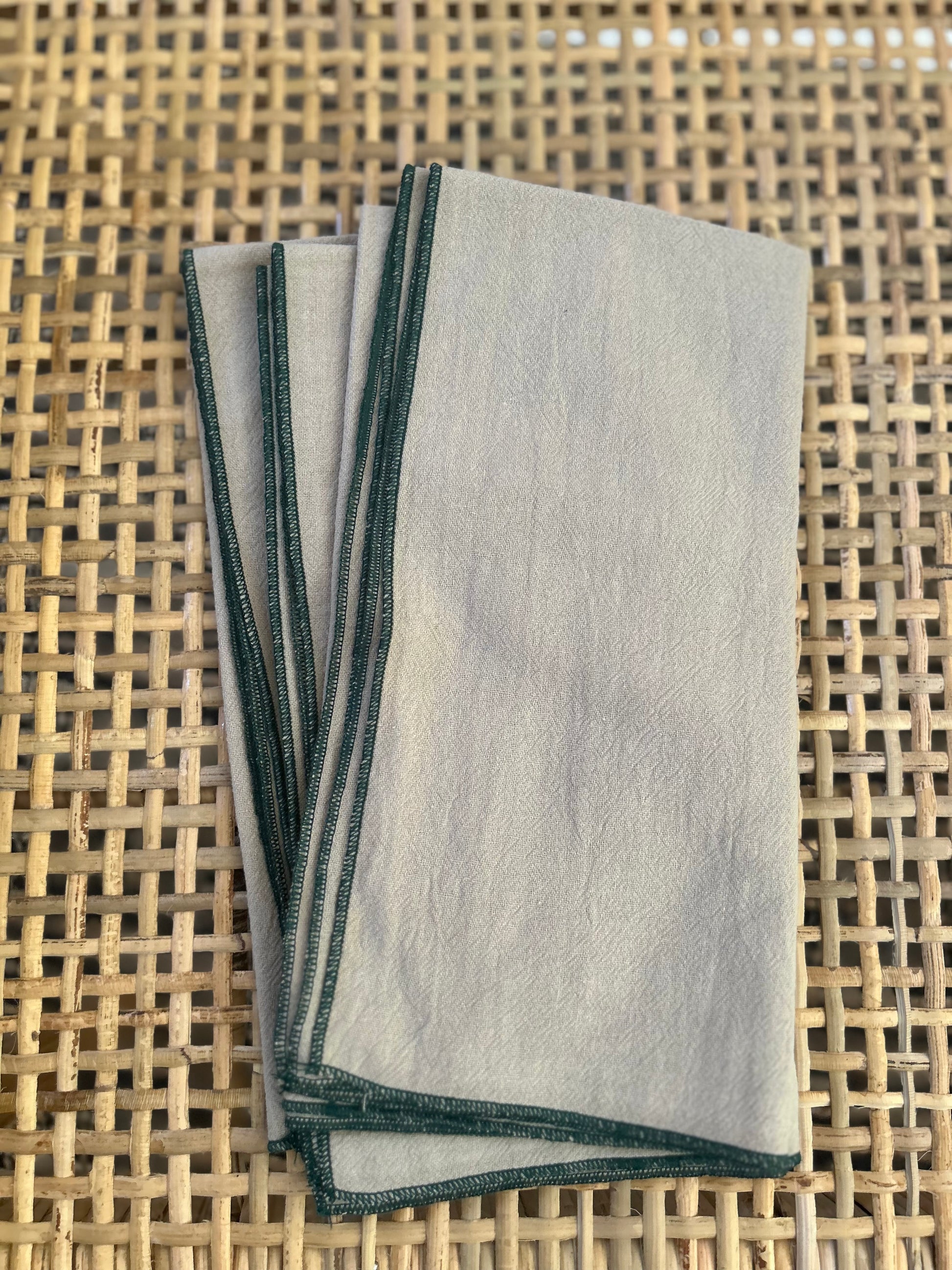 Our Sand napkin set with coloured trim comes in a set of two and are 50cm x 50cm in size.
